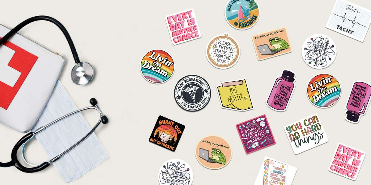 The NurseMod Sticker Club is a monthly membership club of nurses across all 50 states who love expressing themselves and sharing funny, inspirational, and unique sticker designs with their co-workers and nurse besties!