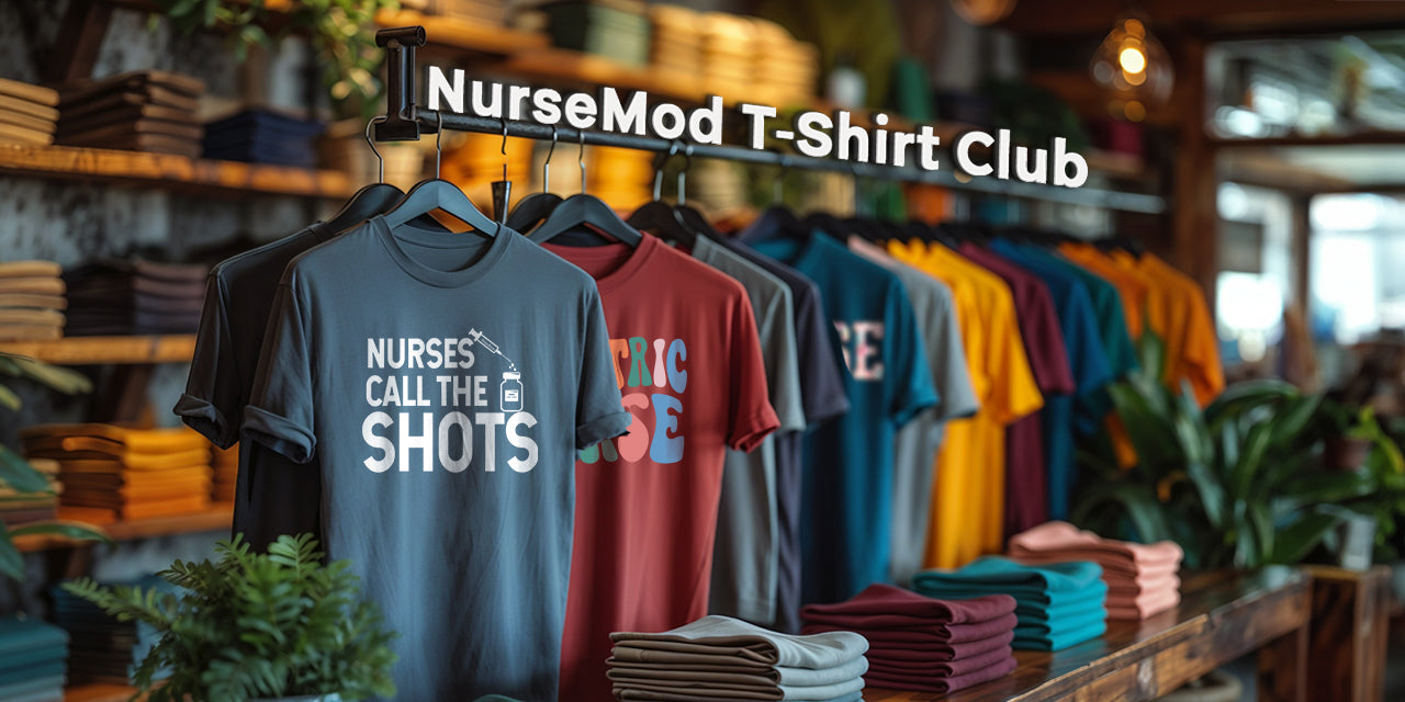 The NurseMod T-Shirt Club is a monthly membership club of fun, loving nurses across all 50 states who are PROUD to be nurses and LOVE expressing themselves with fresh, unique (and sometimes snarky), t-shirts that celebrate everything wonderful about our tight-knit healthcare community!