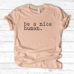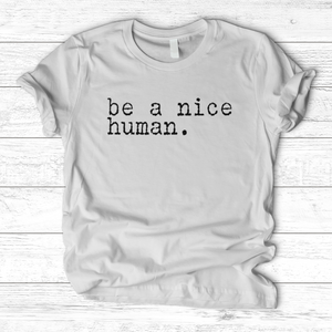 Get ready to fall in love with our Be a Nice Human T-Shirt! Custom printed on our premium Bella Canvas 3001 t-shirt, this tee is going to be your new go-to for effortless style and unbeatable comfort. (You know that comfy tee you reach for every time it’s clean – that’s the vibe!)