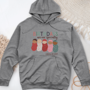 Stay warm and stylish with our Birthdays Are Our Speciality Hoodie! Our SS4500 Standard Supply Midweight Hoodie is the perfect combination of quality, comfort, and unbeatable value! Designed with a generous fit and crafted from premium ring-spun cotton, this hoodie offers a soft, cozy feel you'll love all day long.