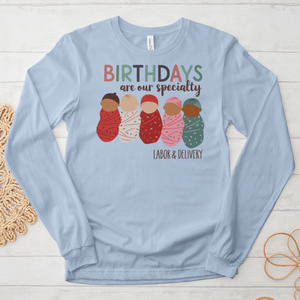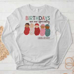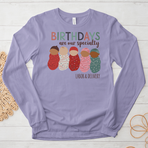 Meet your new favorite Long Sleeve Tee – the perfect blend of comfort and style! This Birthdays Are Our Speciality Long-Sleeve! Design is custom printed on our premium BELLA + CANVAS 3501 Jersey Long Sleeve Tee.