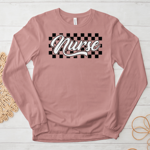 ''Checkered Nurse'' Long Sleeve T-Shirt