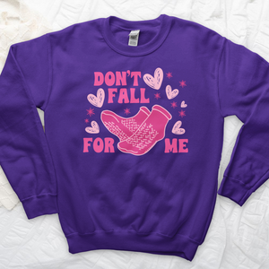 Stay cozy and stylish with our Don't Fall for Me Sweatshirt! Custom printed on our Gildan 18000 Heavy Blend Sweatshirt! Perfect for everyday wear, this sweatshirt is crafted with high-quality materials and the latest MVS Air spinning technology.The result? A smoother, softer feel that’s both durable and resistant to pilling, ensuring long-lasting comfort and a sleek look wash after wash. With a relaxed fit and premium Heavy Blend fabric, this sweatshirt is ideal for layering or rocking on its own. Whether you’re lounging at home, running errands, or staying warm on chilly days, it’s the perfect blend of comfort and style.