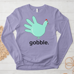 Meet your new favorite Long Sleeve Tee – the perfect blend of comfort and style! This Gobble Long-Sleeve! Design is custom printed on our premium BELLA + CANVAS 3501 Jersey Long Sleeve Tee.