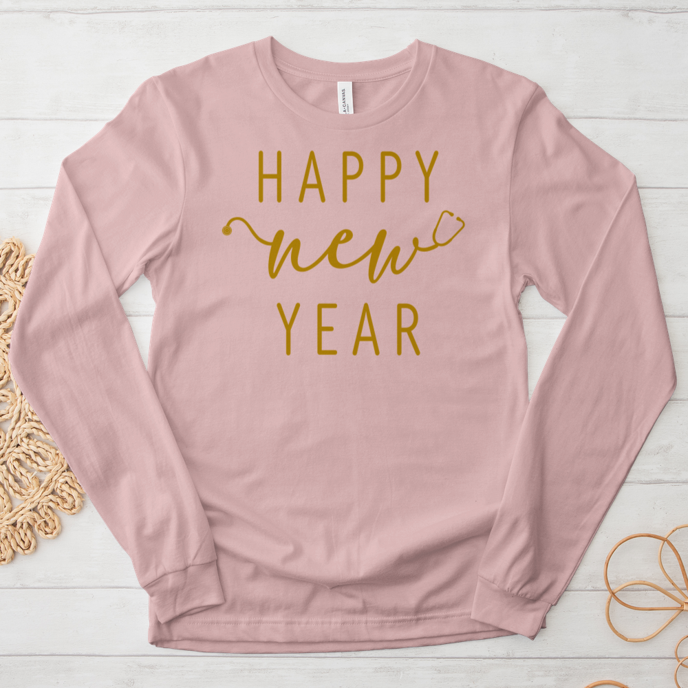 Meet your new favorite Long Sleeve Tee – the perfect blend of comfort and style! This Happy New Year Stetho Long-Sleeve! Design is custom printed on our premium BELLA + CANVAS 3501 Jersey Long Sleeve Tee.