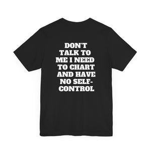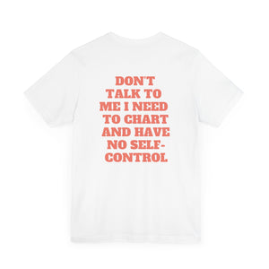 Comes in 2 colors: Black and White, with the phrase, "Don't Talk to Me I Need to Chart and Have No Self-Control."