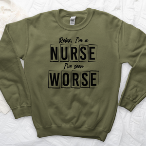 Stay cozy and stylish with our I've Seen Worse Sweatshirt! Custom printed on our Gildan 18000 Heavy Blend Sweatshirt! Perfect for everyday wear, this sweatshirt is crafted with high-quality materials and the latest MVS Air spinning technology.
