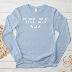 Meet your new favorite Long Sleeve Tee – the perfect blend of comfort and style! This My Alibi Long-Sleeve! design is custom printed on our premium BELLA + CANVAS 3501 Jersey Long Sleeve Tee.