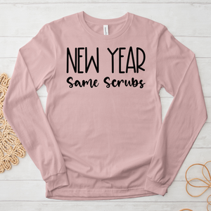 Meet your new favorite Long Sleeve Tee – the perfect blend of comfort and style! This New Year Same Scrubs Long-Sleeve! Design is custom printed on our premium BELLA + CANVAS 3501 Jersey Long Sleeve Tee.