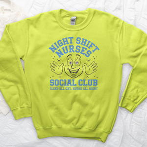 Stay cozy and stylish with our Night Shift Nurse Social Club Sweatshirt! Custom printed on our Gildan 18000 Heavy Blend Sweatshirt! Perfect for everyday wear, this sweatshirt is crafted with high-quality materials and the latest MVS Air spinning technology.