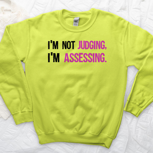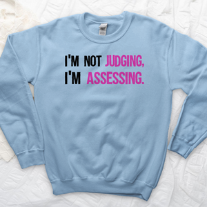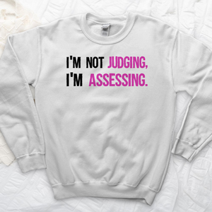 Stay cozy and stylish with our Not Judging, Assessing Sweatshirt! Custom printed on our Gildan 18000 Heavy Blend Sweatshirt! Perfect for everyday wear, this sweatshirt is crafted with high-quality materials and the latest MVS Air spinning technology.