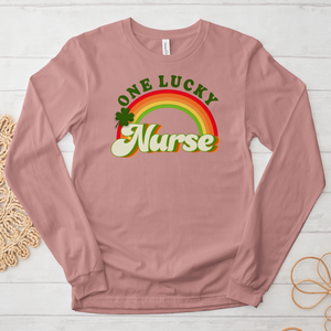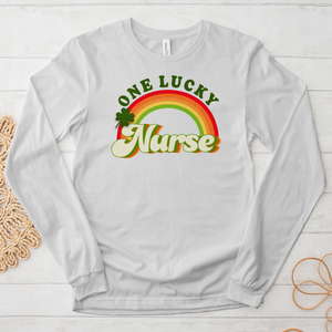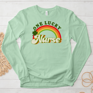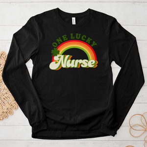 Meet your new favorite Long Sleeve Tee – the perfect blend of comfort and style! This One Lucky Nurse Long-Sleeve! design is custom printed on our premium BELLA + CANVAS 3501 Jersey Long Sleeve Tee.