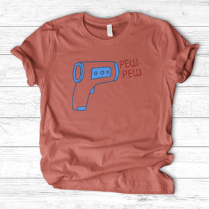 Get ready to fall in love with our Pew Pew T-Shirt! Custom printed on our premium Bella Canvas 3001 t-shirt, this tee is going to be your new go-to for effortless style and unbeatable comfort. (You know that comfy tee you reach for every time it’s clean – that’s the vibe!)
