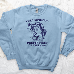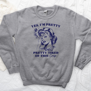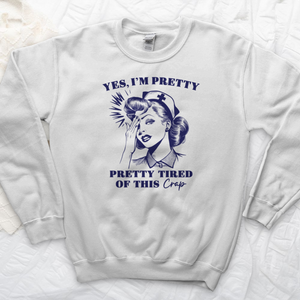 Stay cozy and stylish with our Pretty Tired of This Sweatshirt! Custom printed on our Gildan 18000 Heavy Blend Sweatshirt! Perfect for everyday wear, this sweatshirt is crafted with high-quality materials and the latest MVS Air spinning technology.