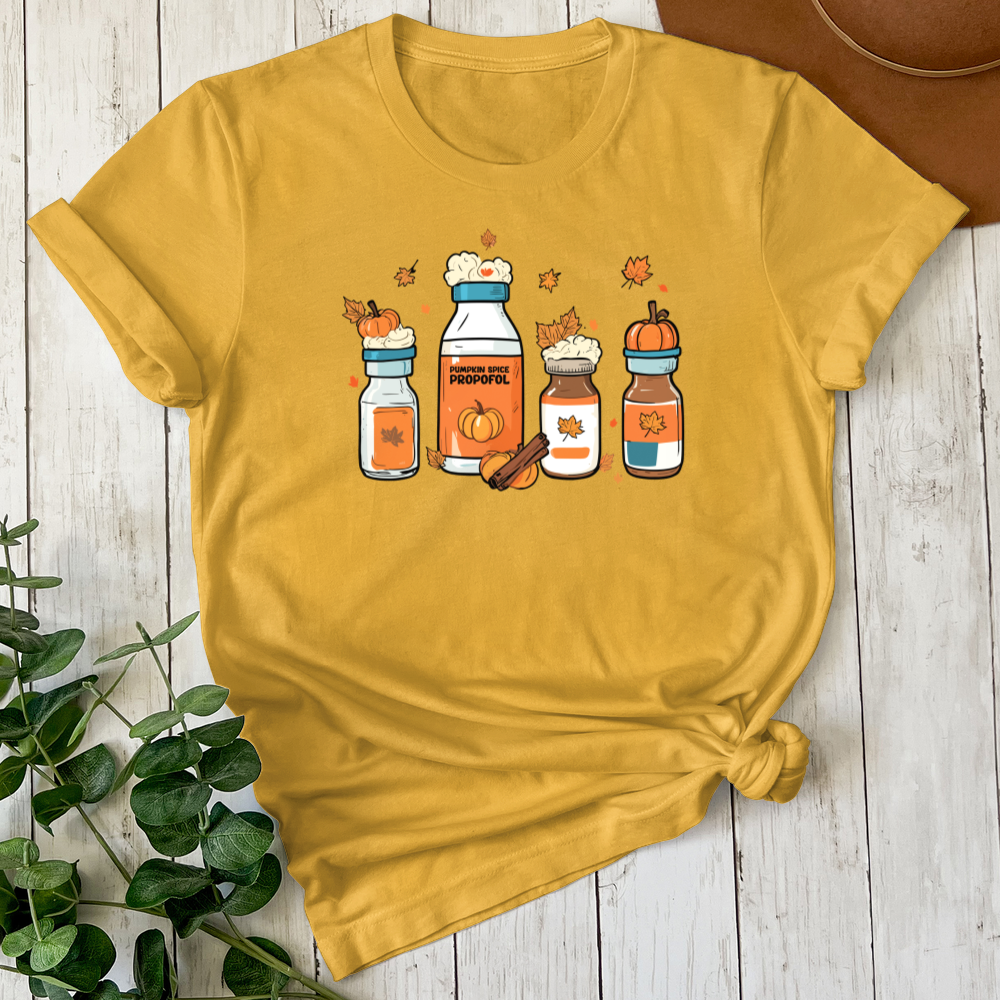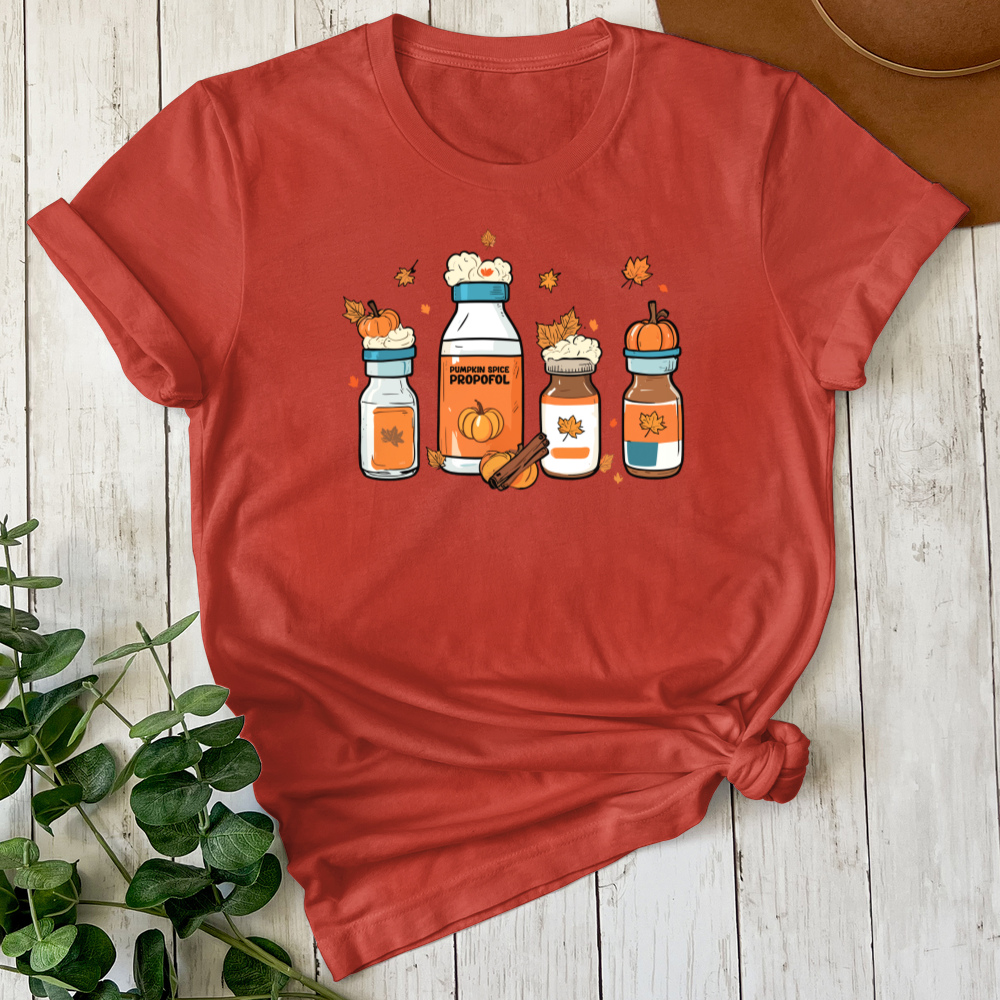 Get ready to fall in love with our Pumpkin Spice Propofol T-Shirt! Custom printed on our premium Bella Canvas 3001 t-shirt, this tee is going to be your new go-to for effortless style and unbeatable comfort. (You know that comfy tee you reach for every time it’s clean – that’s the vibe!)