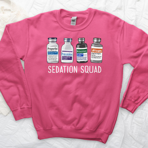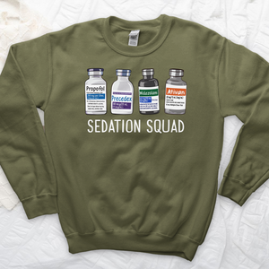 Stay cozy and stylish with our Sedation Squad Sweatshirt! Custom printed on our Gildan 18000 Heavy Blend Sweatshirt! Perfect for everyday wear, this sweatshirt is crafted with high-quality materials and the latest MVS Air spinning technology.