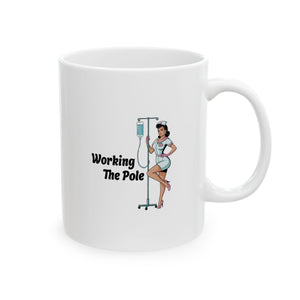 Super cute "Working the Pole" mug sure to get a laugh with all of your nursing and healthcare friends and family!